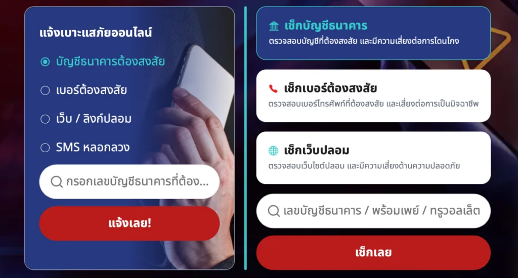 รวมวิธีเช็กชื่อคนโกง ตรวจสอบมิจฉาชีพ เลขบัญชี เบอร์โทรศัพท์ เพจปลอมเฟซบุ๊กหรือแหล่งซื้อขายที่เคยมีประวัติการฉ้อโกง เช็กให้ชัวร์ก่อนโอน ลดความเสี่ยงไม่ให้ตกเป็นเหยื่อ เพิ่มความมั่นใจทุกครั้งก่อนทำธุรกรรมทางการเงินอย่างปลอดภัย