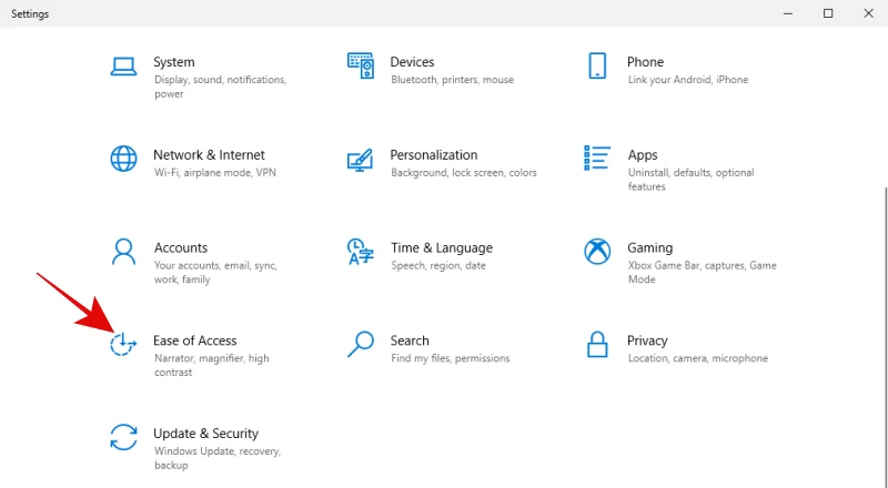 ไปที่เมนู Windows > Settings > Ease of Acess (ความง่ายในการเข้าถึง)