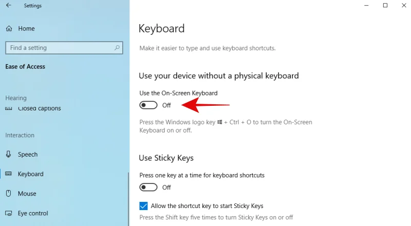จากนั้นดูตรงหัวข้อ Use the On-Screen Keyboard (เปิดแป้นพิมพ์บนหน้าจอ) ปกติจะปิดอยู่เป็นค่าเริ่มต้น หากต้องการใช้งานให้กดเปิดจะมีหน้าต่างแป้นพิมพ์ปรากฏขึ้นมาตรงกลางจอ