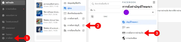 เปิดเว็บไซต์ Facebook Ads Manager มองหาไอคอนรูป ฟันเฟือง หรือ การตั้งค่า > การตั้งค่าบัญชีโฆษณา