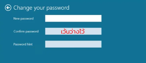 จากนั้นจะปรากฏตัวเลือกเพิ่มเติมให้เลื่อนลงมา คลิกที่เมนู Password กดปุ่ม Change โดยระบบจะให้ป้อนรหัสผ่านปัจจุบัน ส่วนในช่องตั้งรหัสผ่านใหม่ให้ เว้นว่างไว้ กดปุ่ม Next > Finish เป็นอันเสร็จ