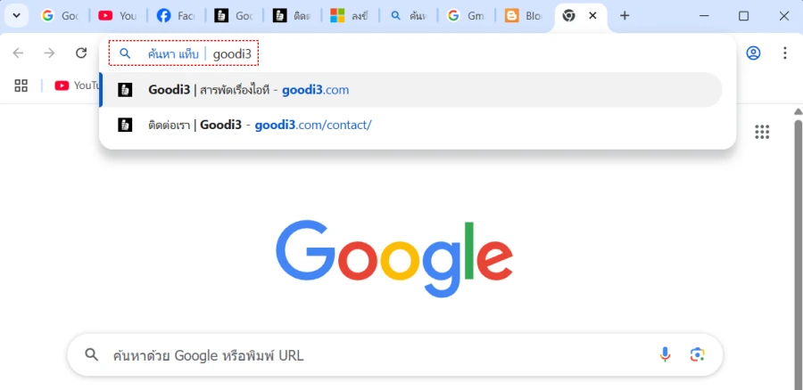 จากนั้นช่อง Address Bar จะเปลี่ยนเป็นโหมดค้นหาแท็บให้ป้อนคำค้นหรือชื่อเว็บไซต์เพื่อไปยังแท็บที่ต้องการแต่ต้องเป็นแท็บที่เปิดเว็บไซต์นั้นอยู่เท่านั้น